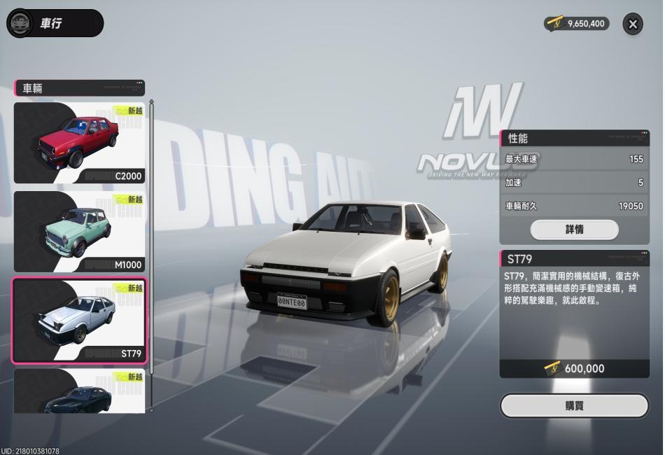 *注(6):ST79汽車原型:為豐田AE86,別稱豐田卡羅拉 Levin;豐田Sprinter Trueno;豐田卡羅拉 GT-S;豐田卡羅拉 GT;是豐田汽車生產兩款小巧、輕量、經濟效益取向高性能轎車「卡羅拉 Levin和Sprinter Trueno」第四代產品代號。「A」代表車型搭載了豐田4A系列發動機,「E」代表是卡羅拉車系的底盤代號,「8」代表第五代卡羅拉(即E80系列),而「6」代表是該世代第六款衍生車型。AE86被著名日本賽車動漫《頭文字D》所推廣,變成家傳戶曉一代日系跑車。2012年,豐田和速霸陸共同推出了致敬AE86的雙門跑車—豐田GT86。