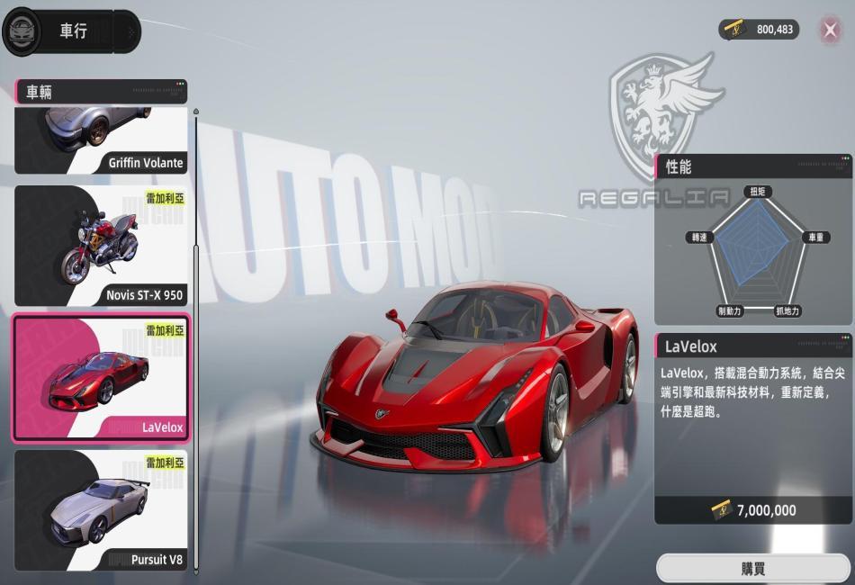 LaVelox跑車部分實機畫面展示。