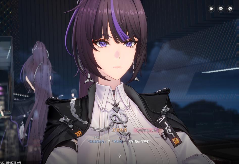 來到局長辦公室後,見到了局長-一位紮著俐落紫色馬尾、身穿黑色風衣、勁裝,頗具領導氣質女性:艾爾菲德,談話中得知零是來自格赫羅斯島(五大機關中掌管監禁)的押解者,在談話過程中有一個低級異象-畫框異象,局長便授意由零、薄荷前往負責探查、完成收容任務。