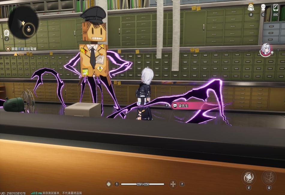 零來到異象管理局入口(一座電話亭,遊戲內進行快速傳送設施),負責接待她的是局長秘書.奈麗,零跟著眼前女性踏入其中-很快,便來到異象管理局大廳,在奈麗引導下,得知現在要前往局長辦公室,途中遇到一位翠綠長髮貓娘...。