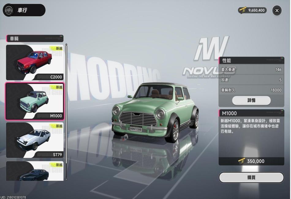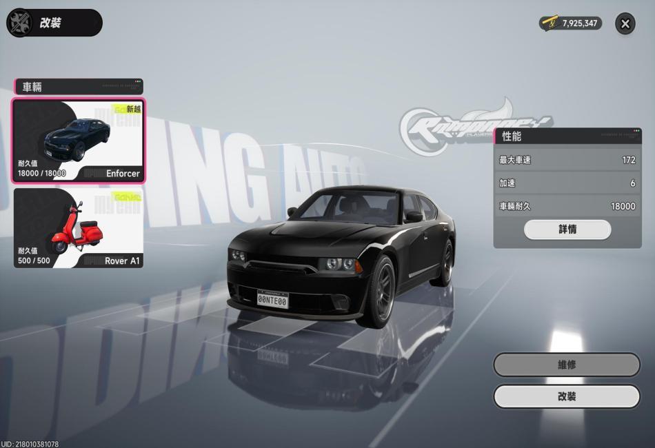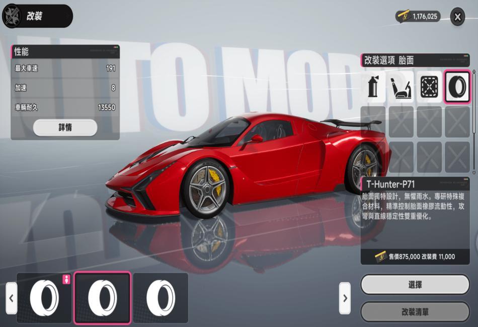 車輛改裝頁面部分實機畫面展示。