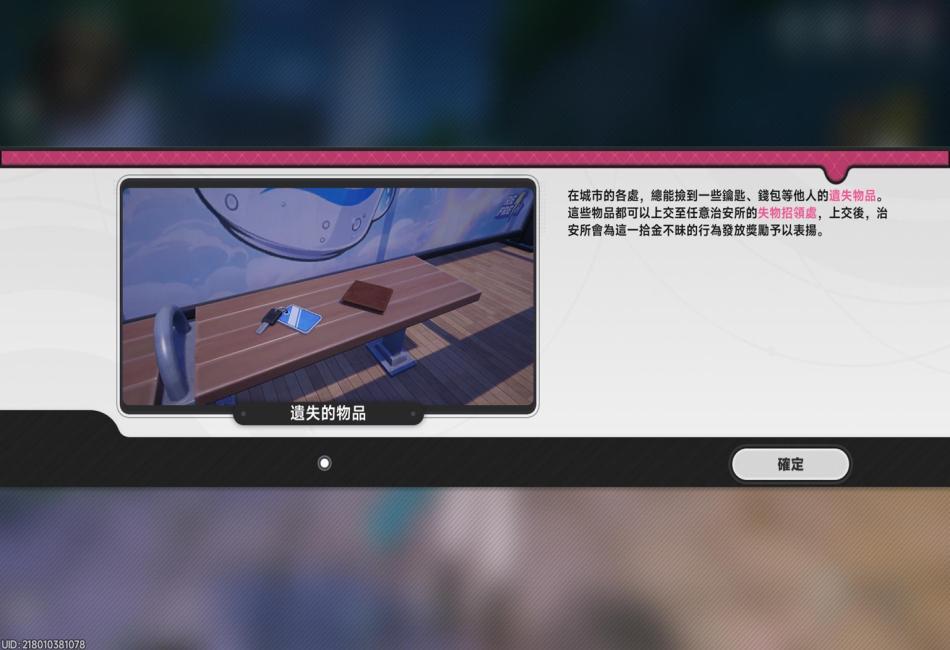 說明:在大地圖進行探索時可拾取遺失物品可上交任意位置治安所-失物招領處可以取得一定數量獎勵。