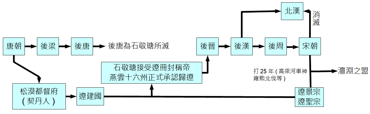 (北宋是否為統一這點一直有爭論,因為北宋強調自己繼承唐朝,但唐朝掌控的西夏與燕雲十六州,直到北宋滅亡時都沒有徹底收復,只能說皇帝說統一那就是統一了)