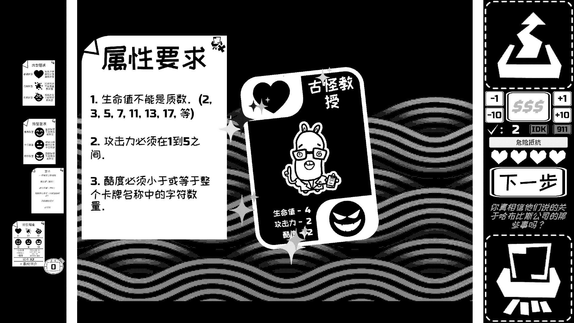 但實際上遊戲的玩法是經典的《請出示文件》:檢查卡牌類型和陣營是否衝突、屬性數值是否符合規定、卡片是否為禁卡等等,只要有一項不合格卡片就要銷毀,如果符合規定,接著才是估價環節,根據類型、陣營、屬性的價值完成價格的評估。