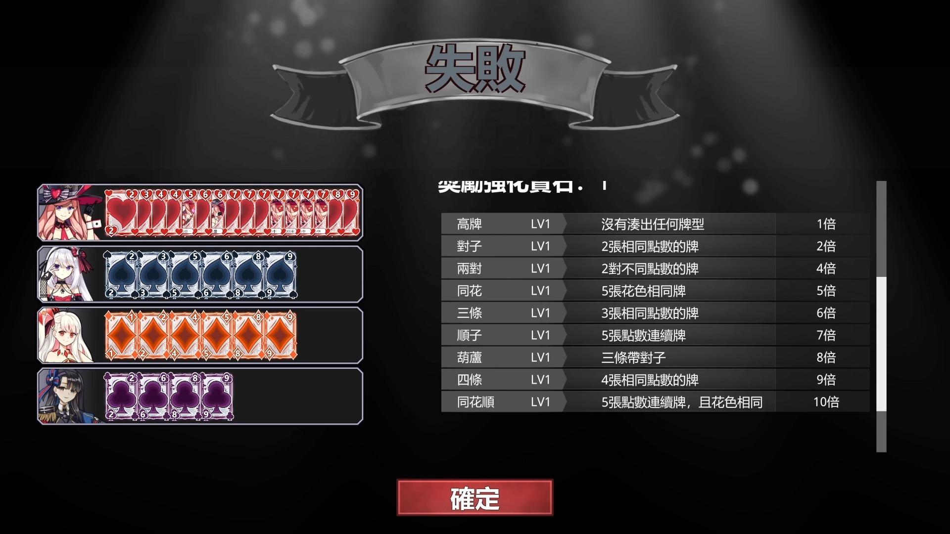 最莫名其妙的就是結算畫面,我是明明用這粉毛角色出擊,那在結算畫面的時候顯示別的角色要幹什麼?然後為什麼要放牌型說明在結算畫面?是在嘲諷我湊不齊同花順被打爆?