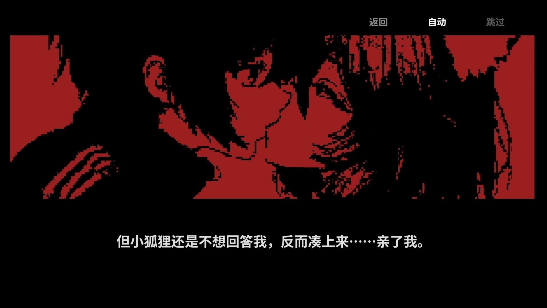 不過遊戲的恐怖氛圍營造得挺不錯,特殊且詭異的畫風配上令毛骨悚然的音樂,難得在視覺小說中感受到恐怖;另一個算是有潛力的地方,就是主角在最絕望地時候撿到的狐狸少女了吧?體驗版的狐狸少女竟然還和主角接吻了,這是百合!?
