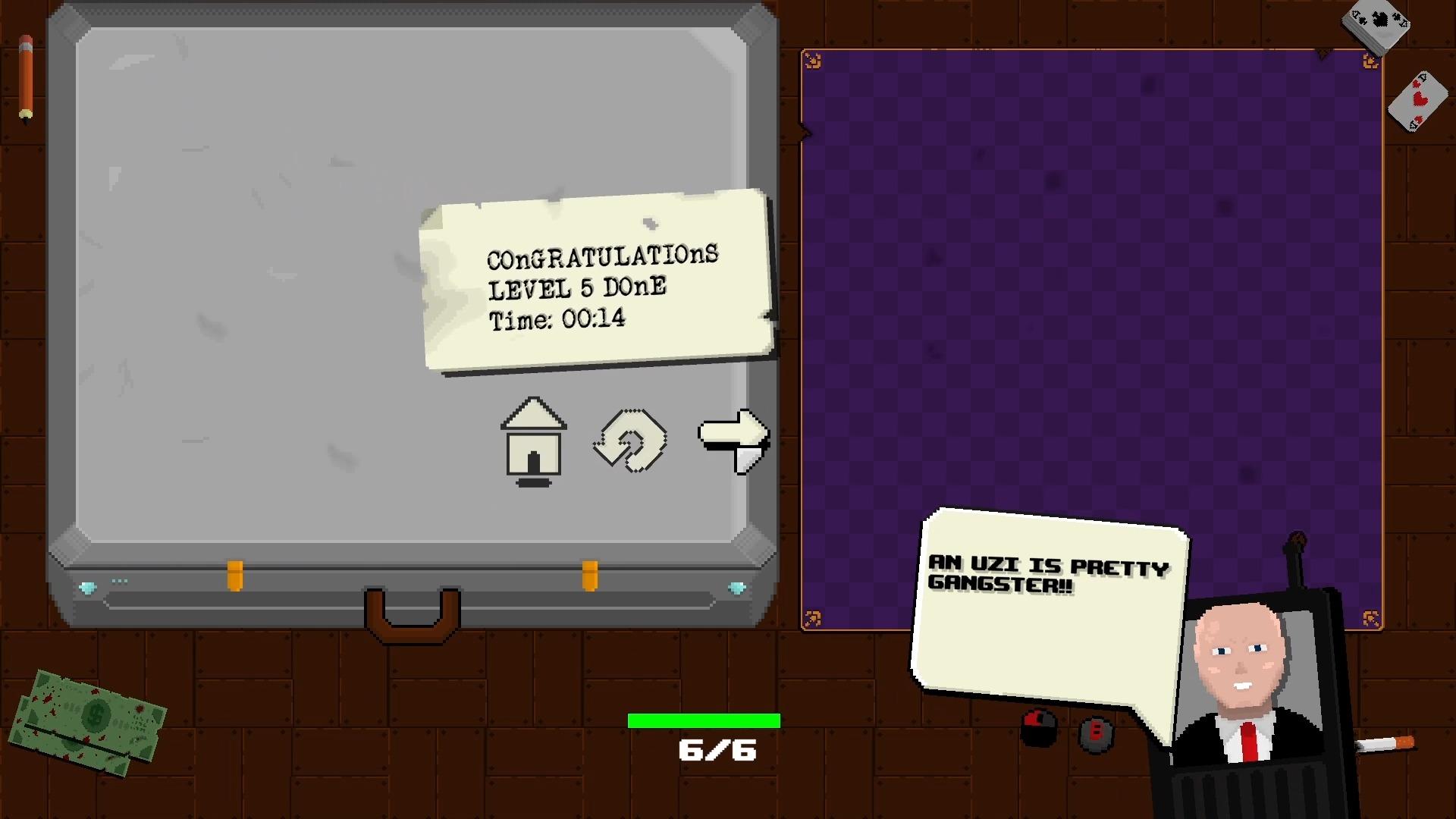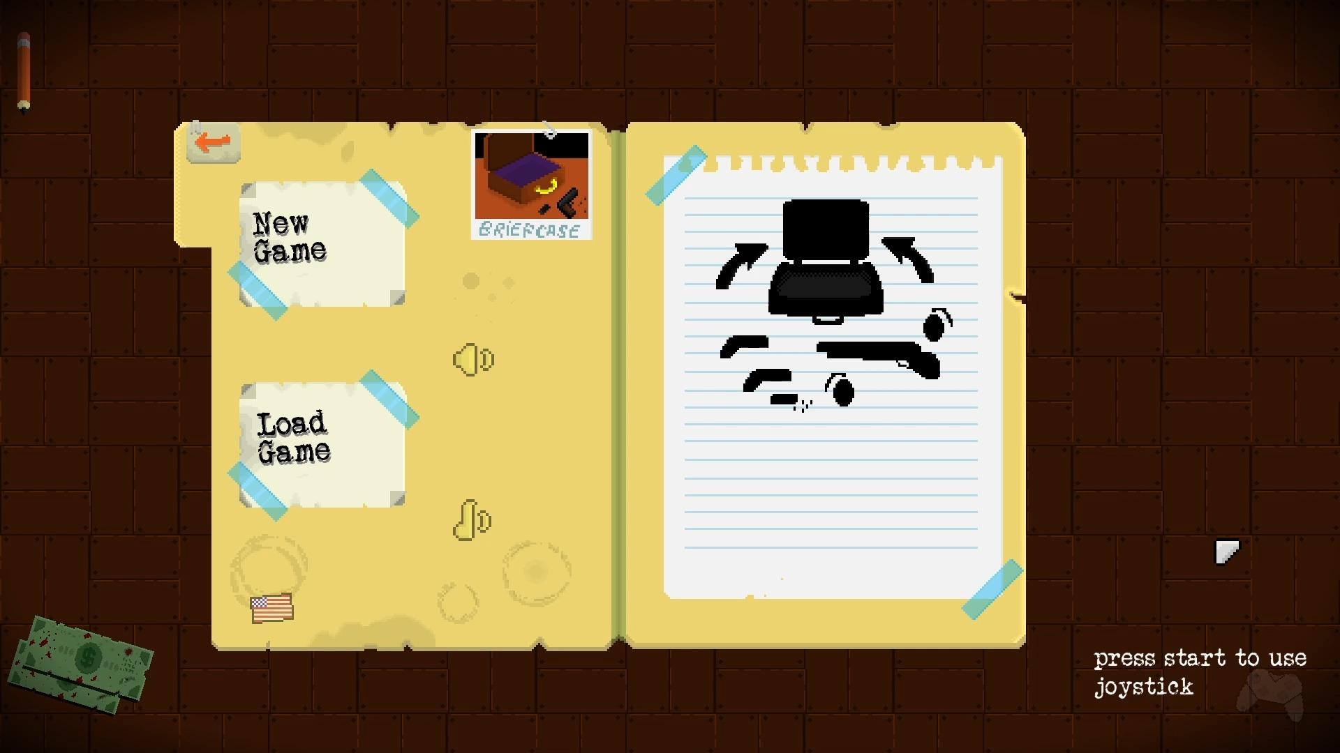 在主畫面中可以看到有「New Game」和「Briefcase」兩個按鈕,其實兩個都是通向「選擇關卡介面的,不太理解特定做兩個擁有同樣功能的按鈕的原因。