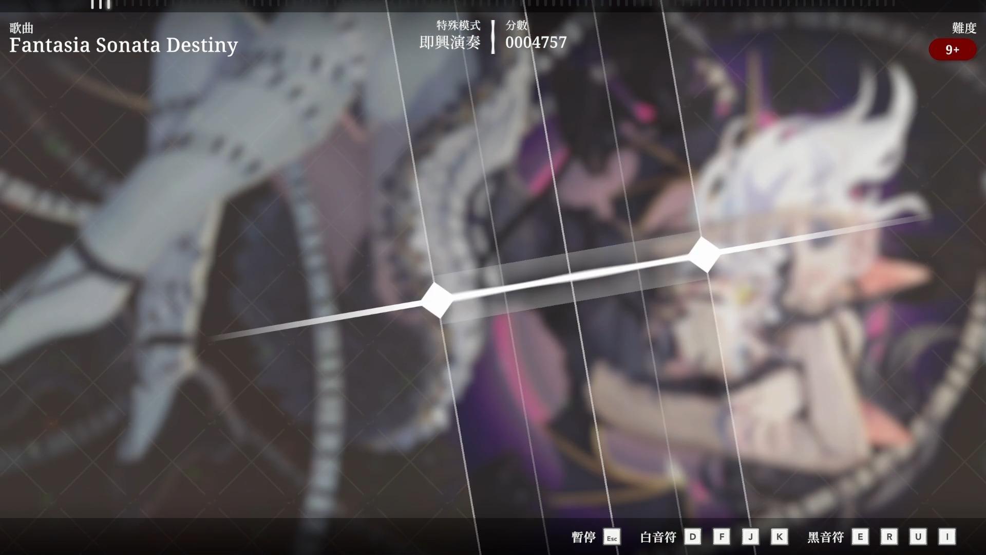 那《莉莉幻想曲》特別之處在哪?那就是音符的判定線,這判定線就像是不安分的小屁孩一樣亂動,音符的Offset是準的,但判定線亂動會干擾玩家對音符落到判定線上的的判斷。