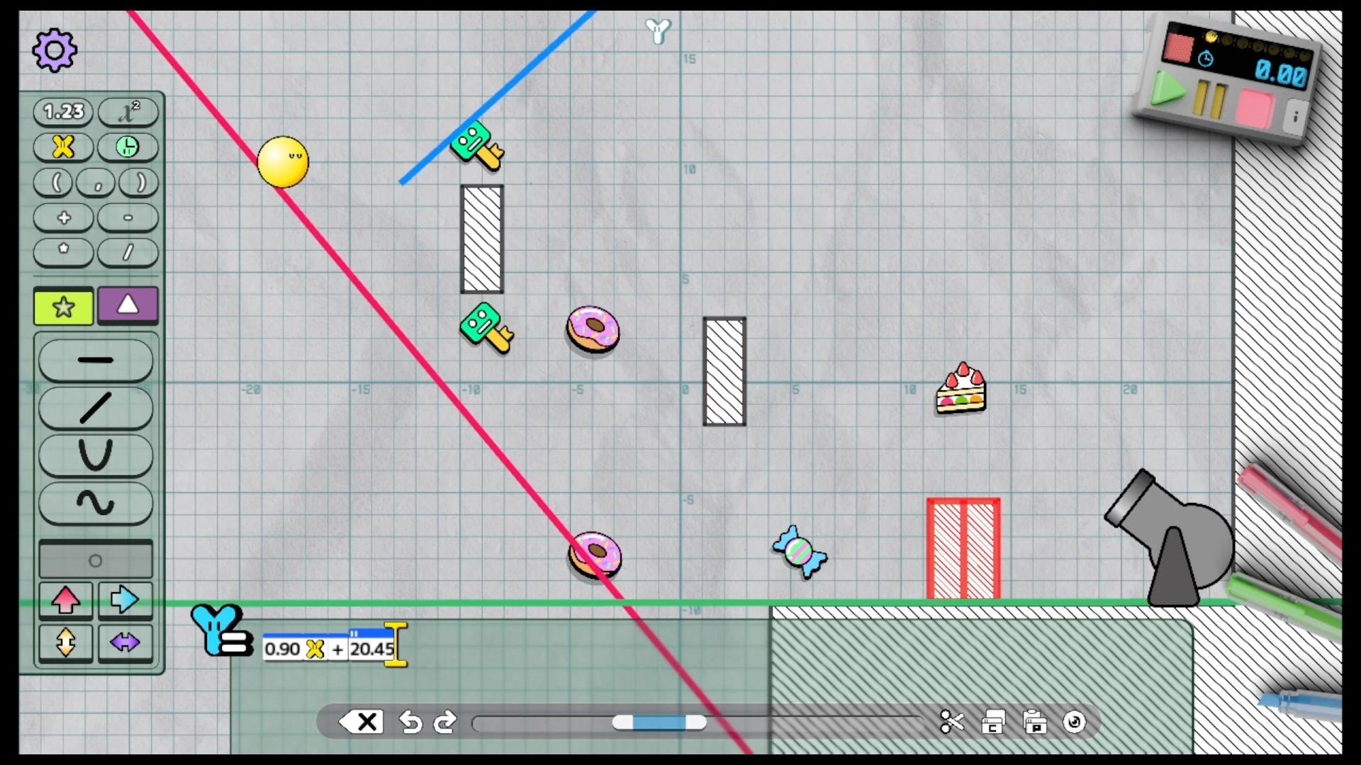 幸好遊戲的可視化做得不錯,有把複雜的數學公式轉化成連我這個菜雞都看的懂的圖示,新手教學也做算平易近人,讓我這個數學白癡依舊能平穩能過關的,但比起用方程式畫線,我還是必較喜歡那種用筆直接畫線的玩法。