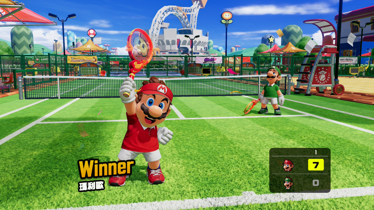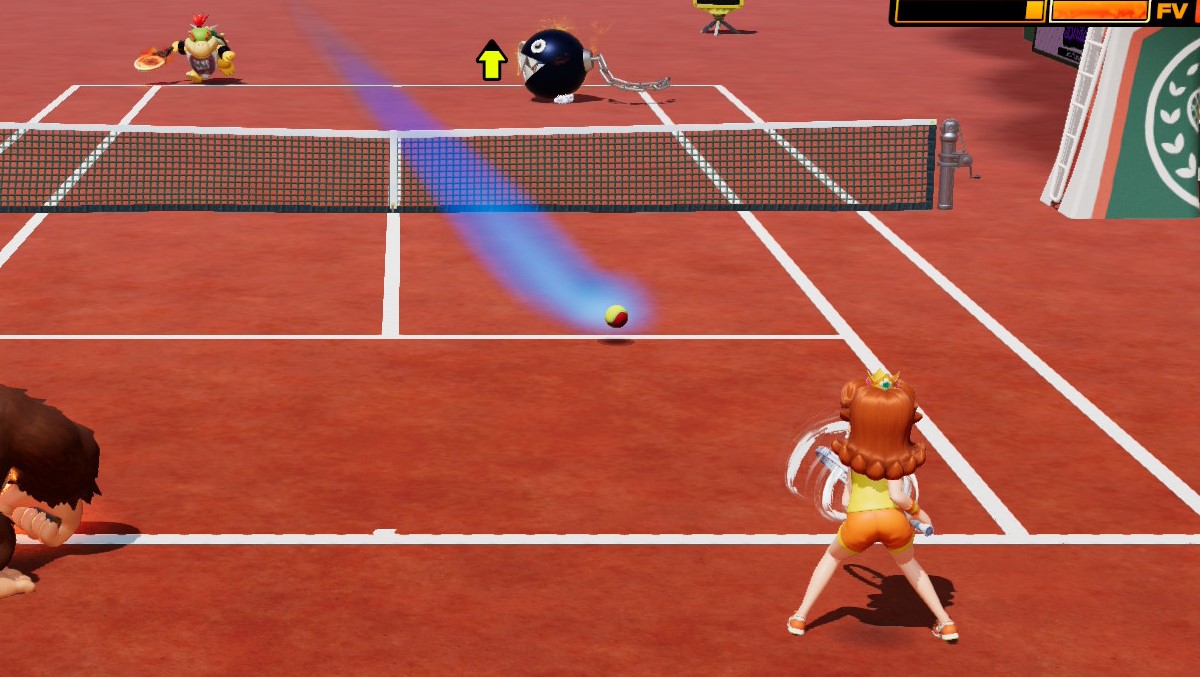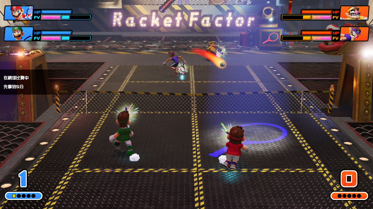 本作網球 Fever,除了角色們的操作性能與擊球特色外,多種效果的「狂熱球拍」,以放絕招的形式,在場地上增加干擾效果,如吹歪角色和球路的龍捲風、散落一地的刺丸丸、遮擋視線的汙泥、把對手往場後推的擊球等等等,共有 30 種不同效果的球拍,賦予靜態球場更多不可控的變化性,趣味程度是近年瑪利歐運動遊戲之最。