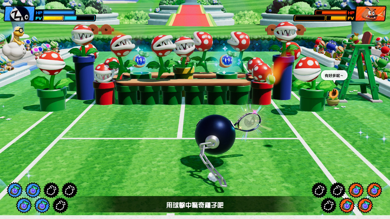 驚奇花球場,除了贏球之外,當場地進入驚奇狀態後,球網中間會出現驚奇花種子,擊球獲取也能拿分。