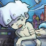 後來我靈光一閃,正好想到了達摩克利斯之劍的故事,想說就在Neptaan頭上放一把劍,然後Tidy想剪斷懸掛著劍的繩子,這樣的場面。