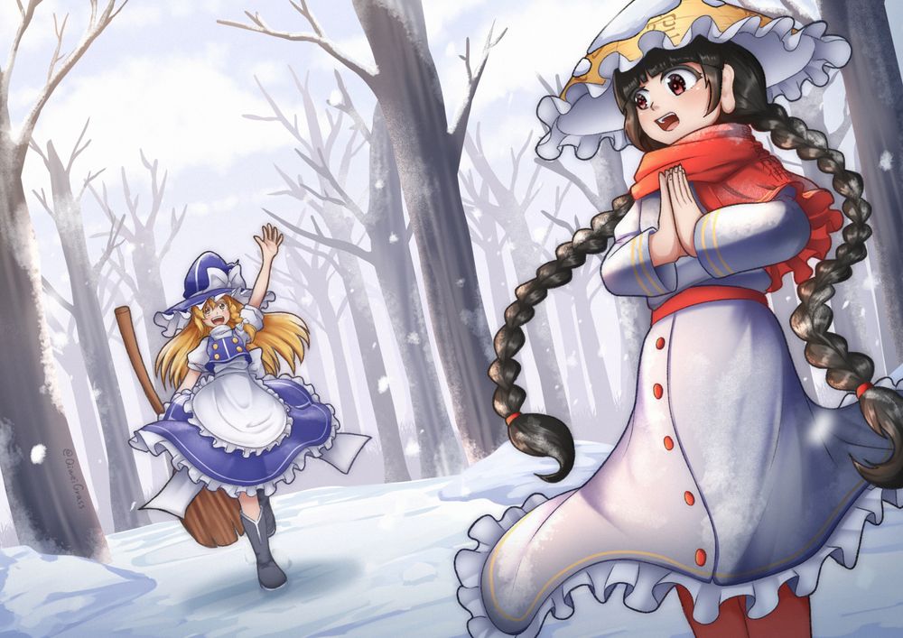 於是就畫了矢田寺成美!!然後為了讓畫面再增添點故事性,加上了魔理沙的互動~~