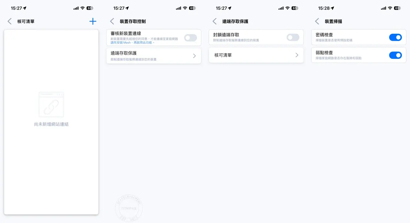 除了抵禦外部攻擊,內部控管也相當嚴謹!你可以開啟「審核新裝置連線」來杜絕鄰居偷蹭網,還能利用「裝置掃描」功能,一鍵檢查家中的 IoT 設備是否有使用出廠預設密碼等資安弱點,防護滴水不漏。