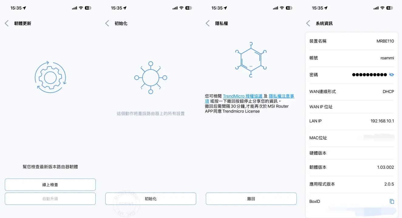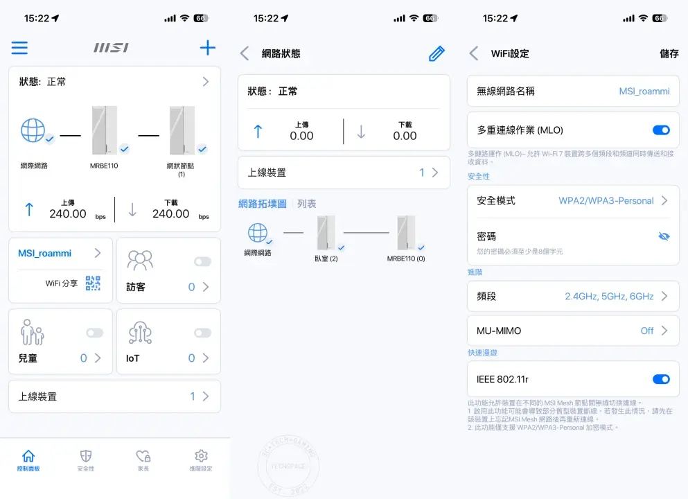雖然每次等待的時間不長,大約都在 1~2 秒內,但對於習慣了現代 App「秒切秒開」流暢度的使用者來說,在連續進行多項細部設定時,確實會稍微感受到一點點的不流暢感。我們也期待微星未來能透過 App 的版本更新,進一步優化後台數據的快取機制,讓整體的操作體驗能和 Roamii BE Pro 的網速一樣,達到真正的「絲滑順暢」!