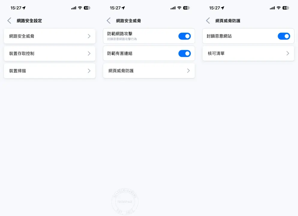 在網路安全設定中,沒有艱澀難懂的防火牆代碼,只要輕鬆滑動「防範網路攻擊」與「封鎖惡意網站」的開關,系統就會在背景默默幫你擋下潛在威脅,讓家中長輩或小孩上網也能超級安心。