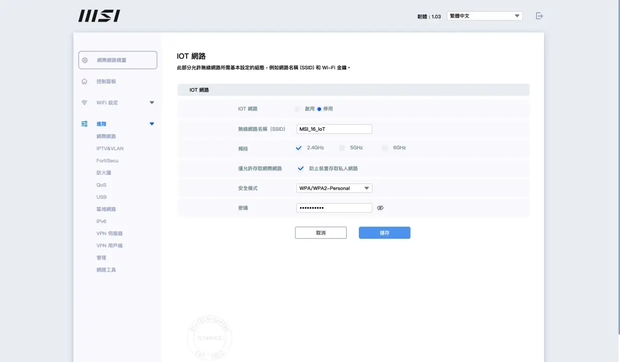 針對越來越多的智慧家電,你可以在「IOT 網路」頁面建立專屬連線。不僅能將頻段鎖定在相容性與穿牆力最好的 2.4GHz,還能開啟「防止裝置存取私人網路」功能,將 IoT 設備與家中電腦、NAS 徹底隔離,大幅降低駭客透過智慧家電入侵內網的風險。