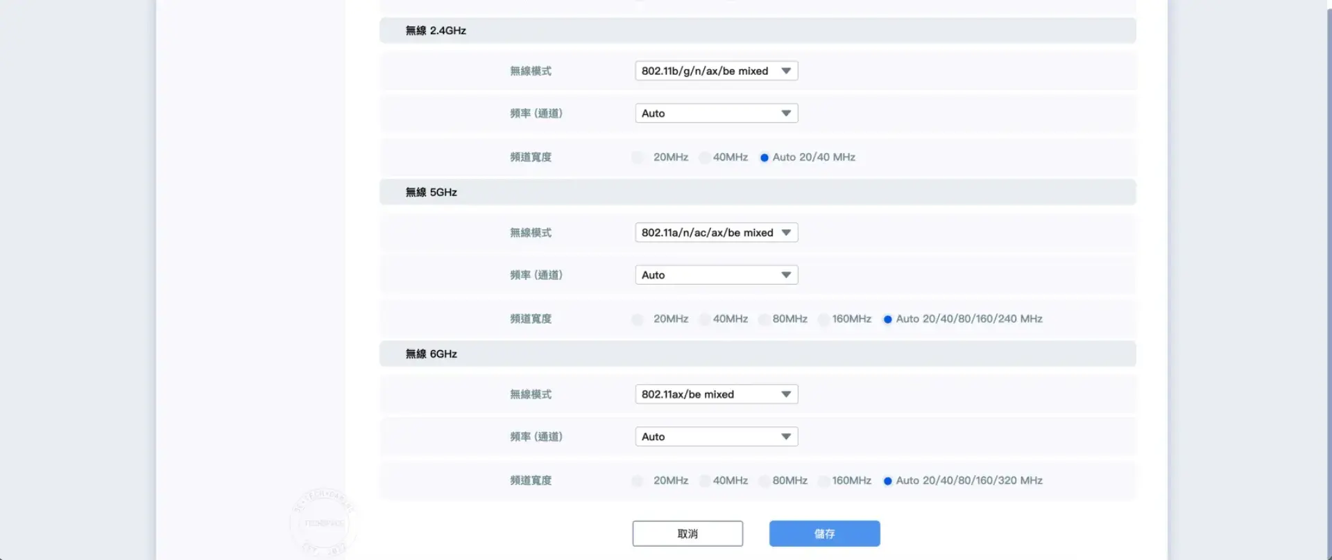 往下滑更是別有洞天!在 6GHz 的細部設定中,我們看到了 WiFi 7 專屬的「320MHz」超寬頻道選項。記得將它開啟,這可是讓網速直接翻倍、享受極致低延遲電競快感的終極秘密武器!