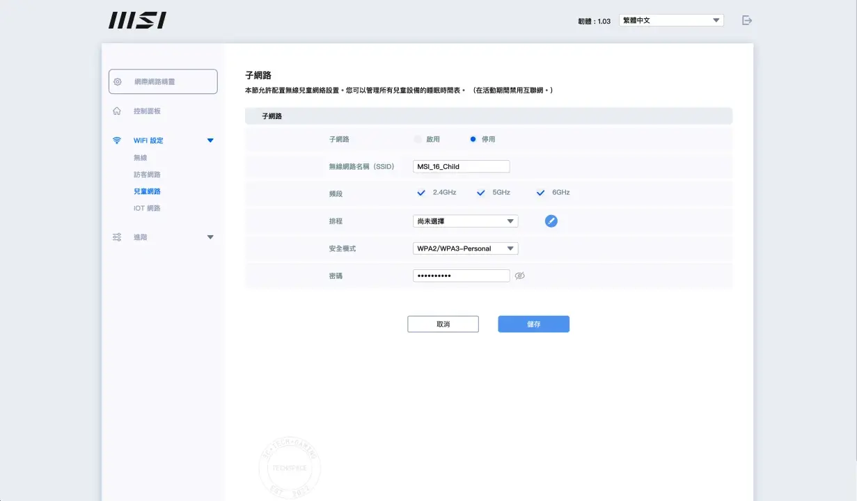 家裡有小孩也不用擔心!在「子網路」設定中,你可以專為兒童設備建立獨立的 WiFi 網路,除了能設定專屬的 SSID 和密碼外,最棒的是能直接在後台排程設定「睡眠時間」,時間一到自動斷網,輕鬆控管孩子的上網習慣。