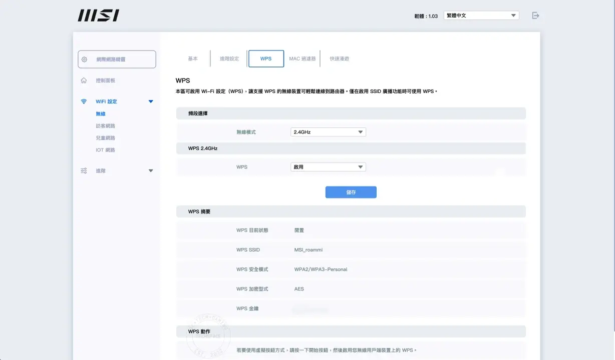 如果家中有支援 WPS 的印表機或舊式網卡,後台也保留了完整的 WPS 設定頁面,按個按鈕就能免密碼快速配對,兼顧了各種設備的相容性。