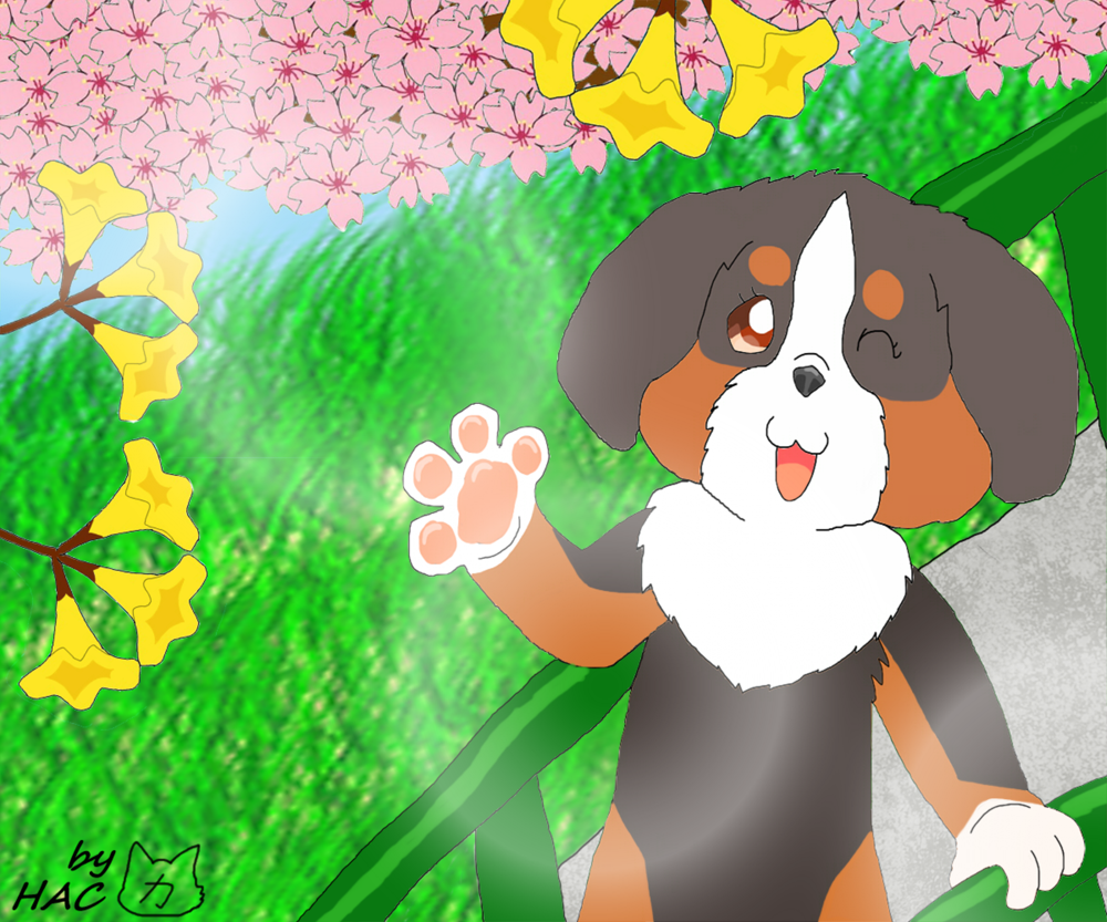 倉鼠午安,最近看到很多山櫻花和黃花風鈴木畫了這張,整個心情都會變好[e24]