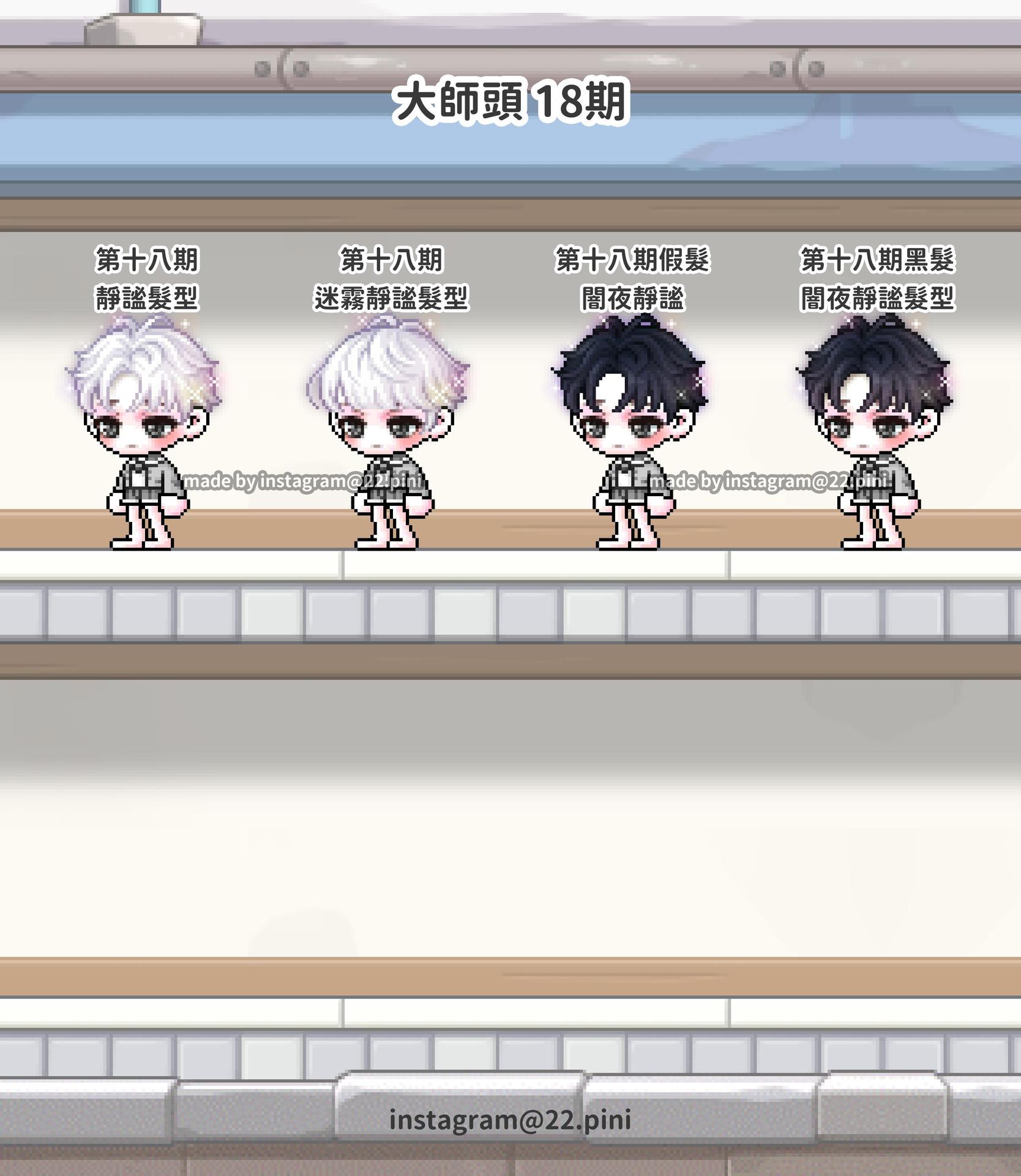 | 18 | 靜謐髮型 | 迷霧靜謐髮型 | 闇夜靜謐 | 闇夜靜謐髮型 |