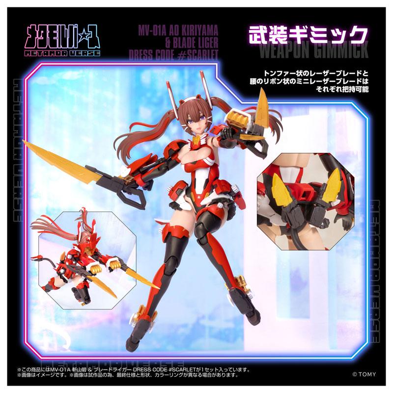 本商品為 TAKARA TOMY 與壽屋協業企劃「METAMOR VERSE」系列第一彈,將原創角色「斬山碧」與《ZOIDS》系列的「刀鋒獅子」以 1/10 比例可動塑膠模型套件立體化。本款為以紅色為基調的「DRESS CODE #SCARLET」配色版本。