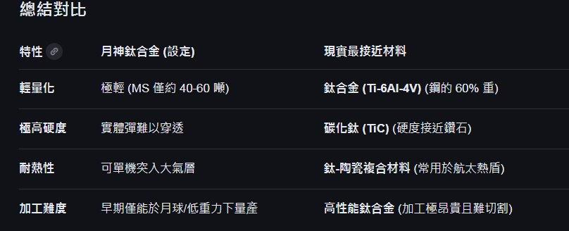 | 問:鋼彈UC 中 的 月神鈦合金 在現實中是否有性能類似的合金? |
