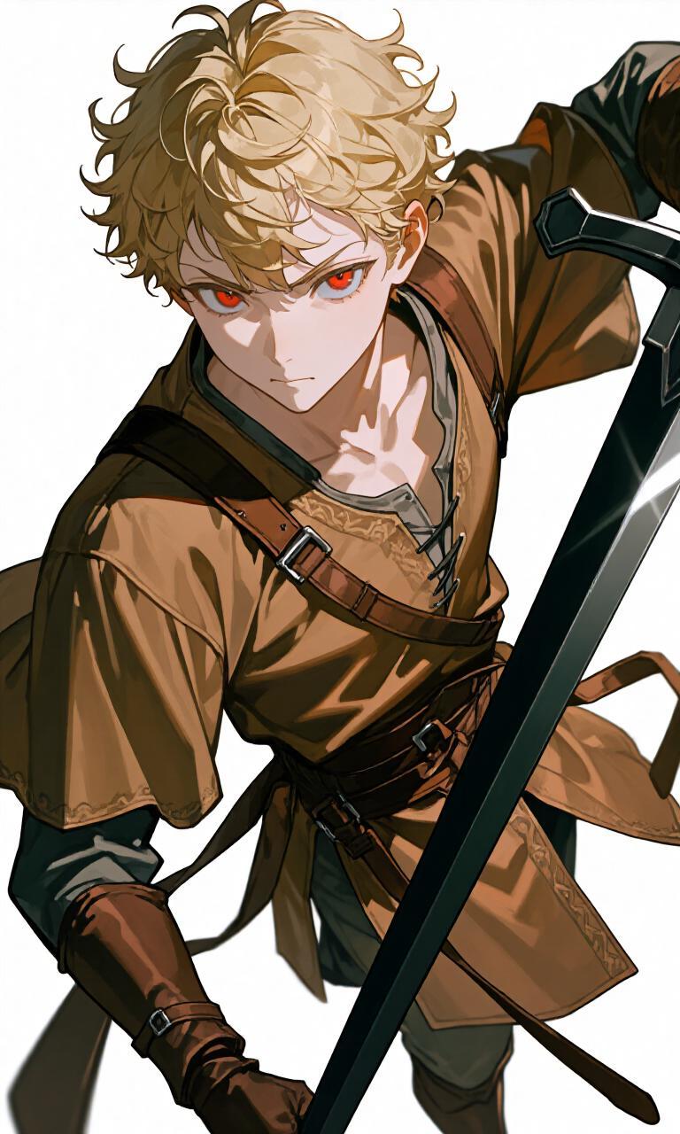 額間瀏海下方是一雙鮮紅色的眼睛,原本稚嫩的五官也變得成熟許多,周身纏繞著紅色的鬥氣,強大的魔力伴隨著令人喘不過氣的巨大威壓。