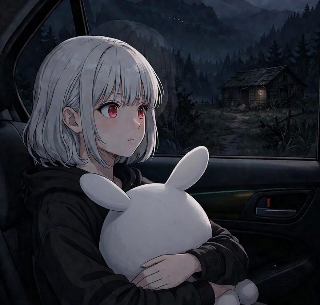 在某處停車,四周很暗很可怕,是山姥的地盤。沒有其他人,只有我們一台車。