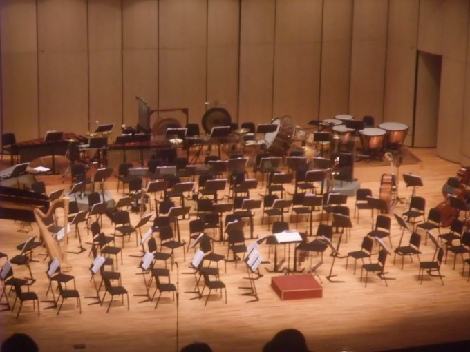 鏡頭拉近先拍一張.舞台特寫..相當齊的交響團耶..