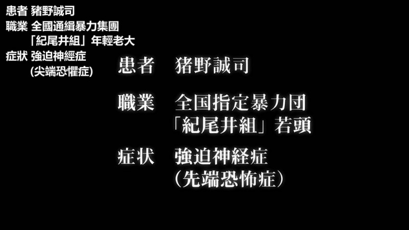 TV動畫 將從2009年10月15日開始在日本富士電視臺旗下的noitaminA欄目播放 各話均以一個獨立的故事展開 預定全11話 每話長度30分鐘 將在這11話中登場的前來精神科尋求治療的人們均請來了聲優界的知名人士演繹