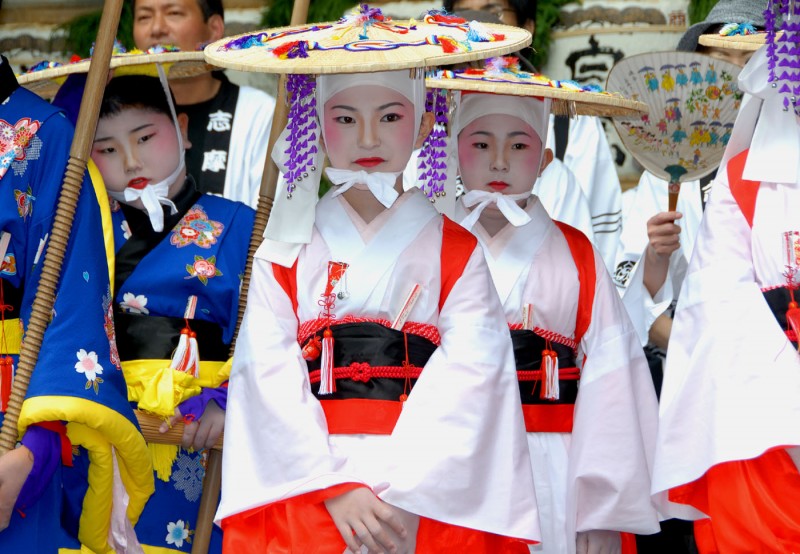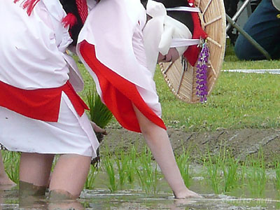 御田植祭,是在水無月前夕,也就是現在六月中旬左右,為了農業豐收而舉行的祭典,可以說是插秧(田植)的預演。圖為三大御田植之一的伊雜宮御田植祭。