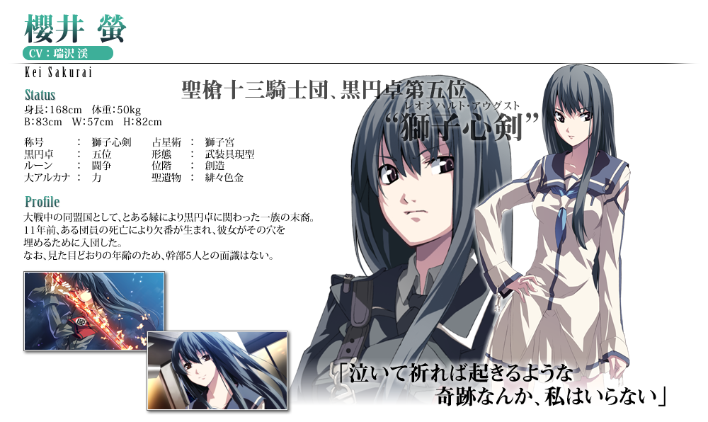 在性格上雖然大大有問題,但因為在殺戮方面異常優秀的關係,在實力至上主義的騎士團內有著不動的地位。