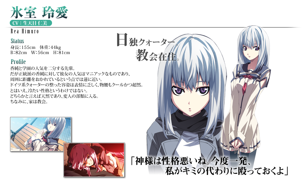 氷室 玲愛 (ひむろ れあ) CV : 生天目仁美