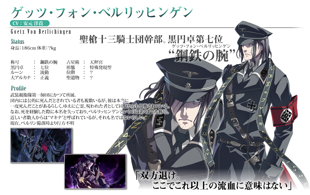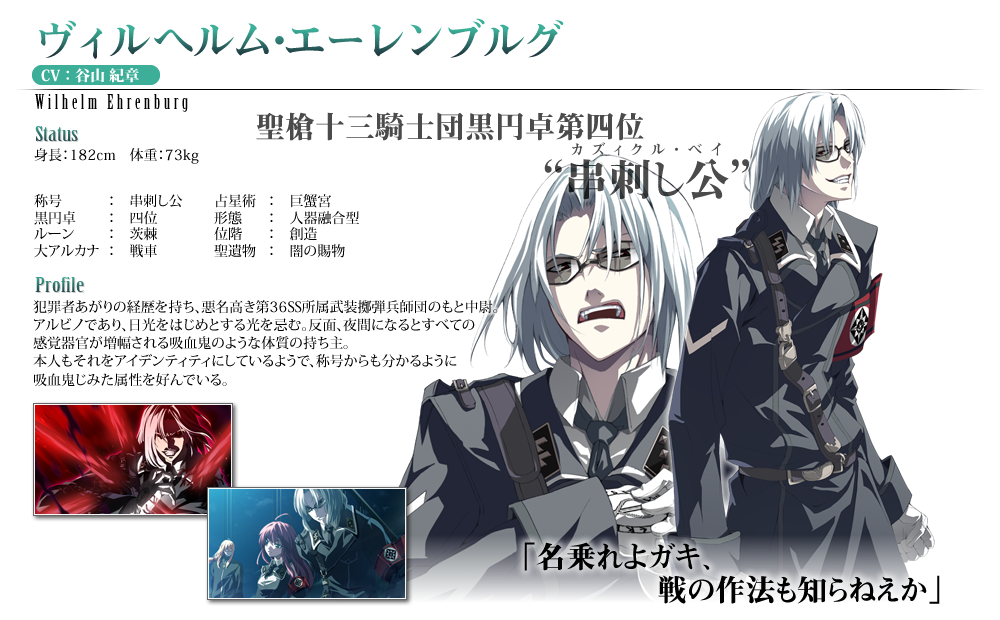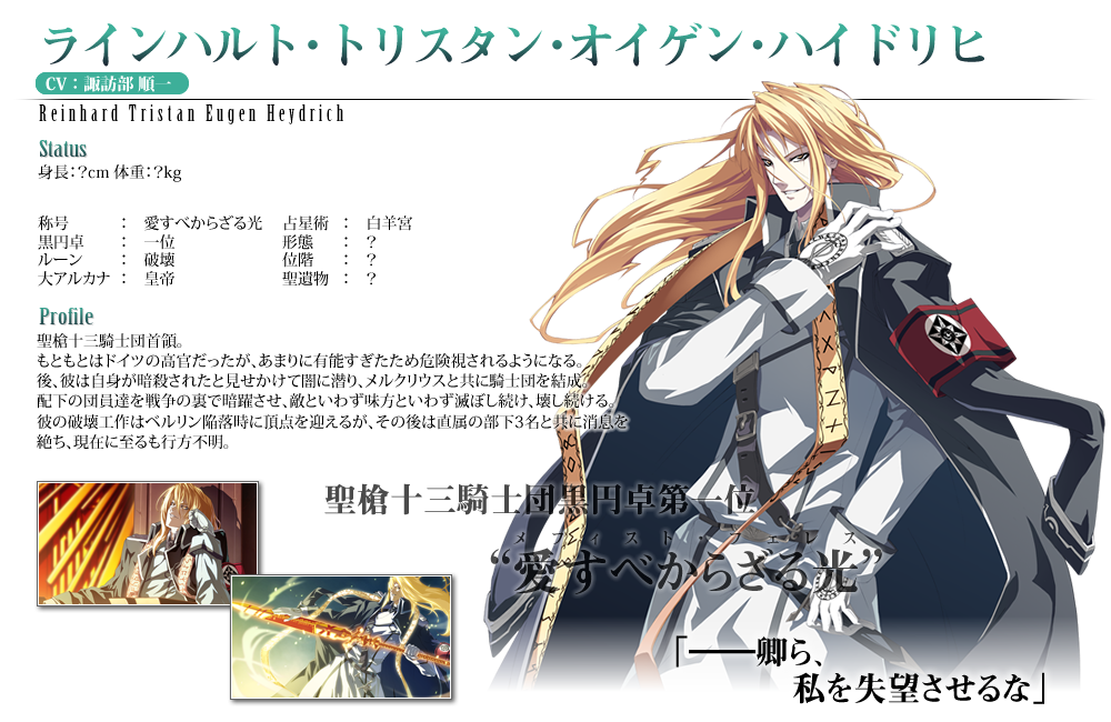 聖槍十三騎士團幹部。黑圓桌第十二位 <惡名昭彰之狼>