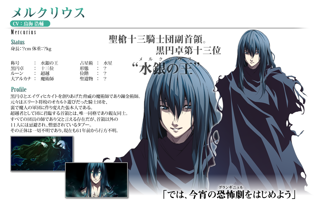 聖槍十三騎士團副首領。黑圓桌第十三位 <水銀之王>