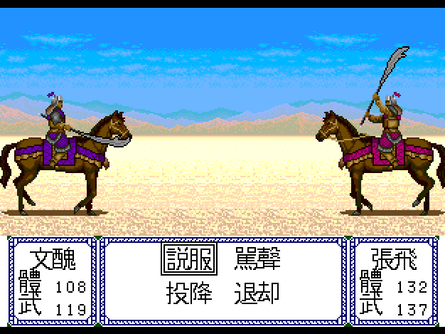 每場戰鬥都會顯示是否要跟敵將進行單挑