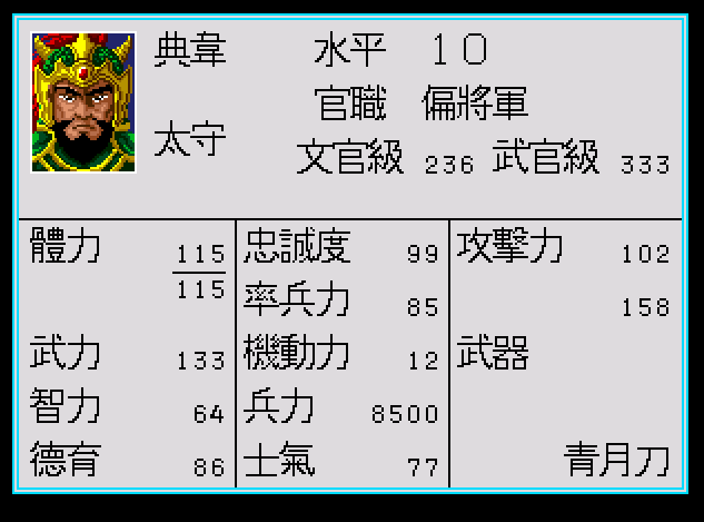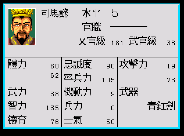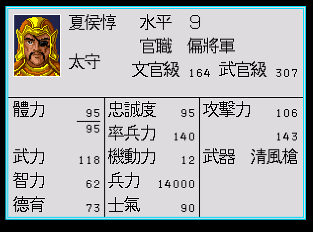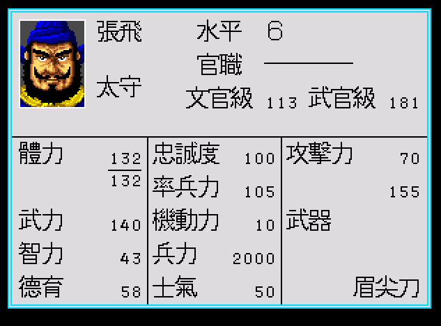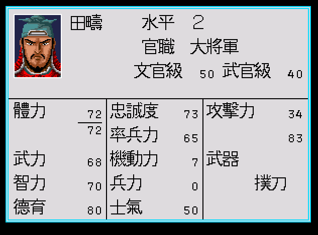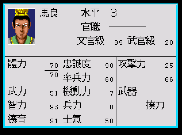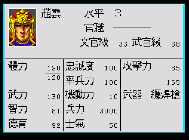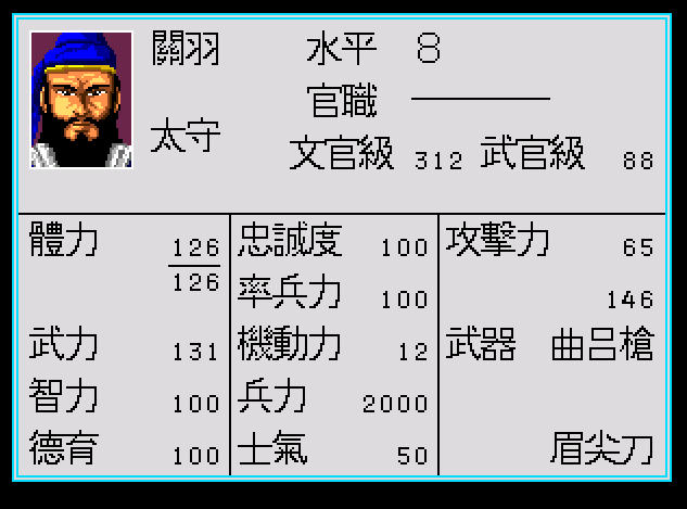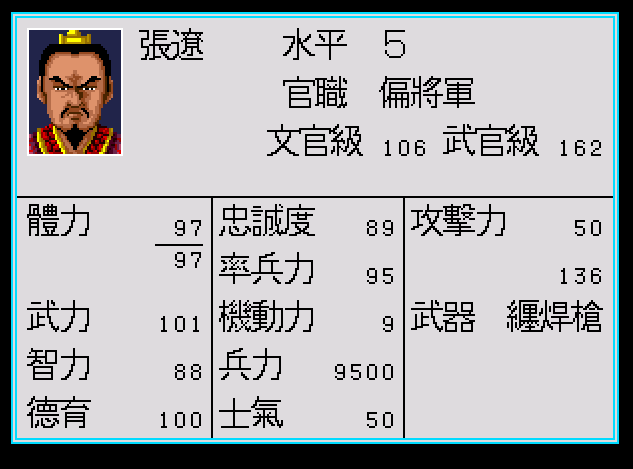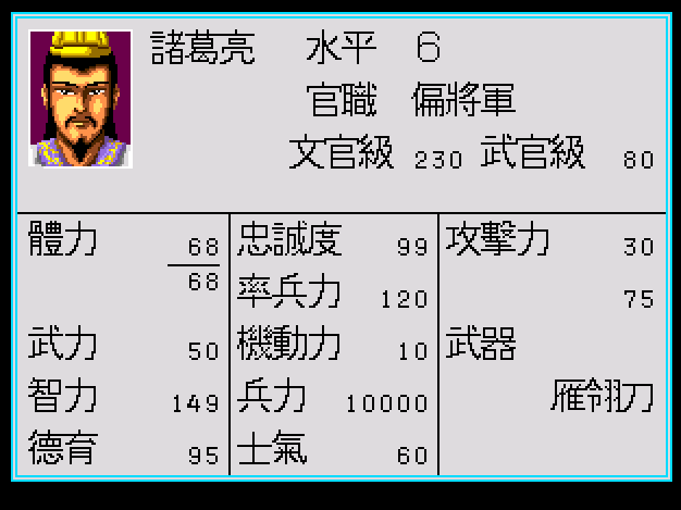 下面是武將的狀態表,很清楚可以看到,三國志列傳很早就使用了武將成長的概念