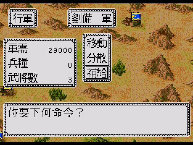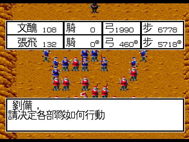 與KOEI早期的三國遊戲不同,只要你糧食多,你可以直接從北走到南邊攻打城池