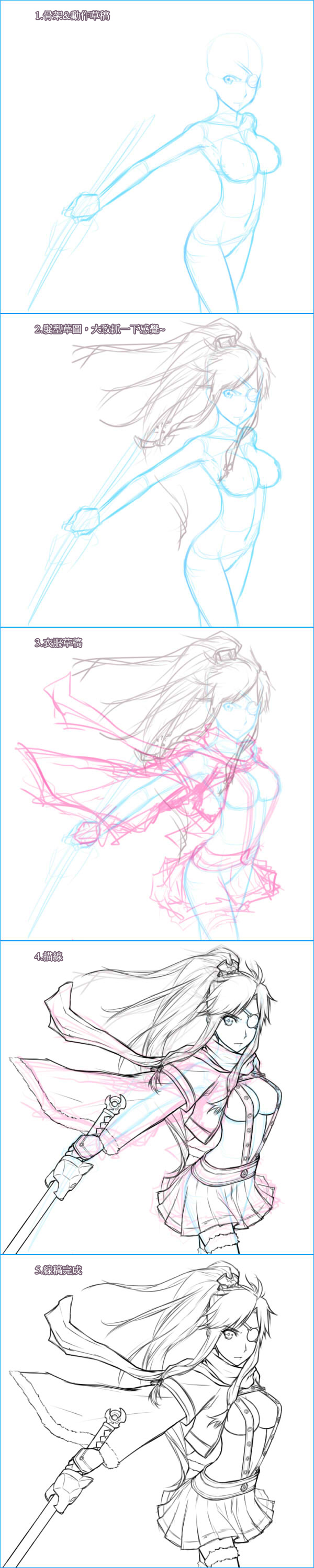 所以仔細看阿弾畫的線稿並不會只有黑色的線
