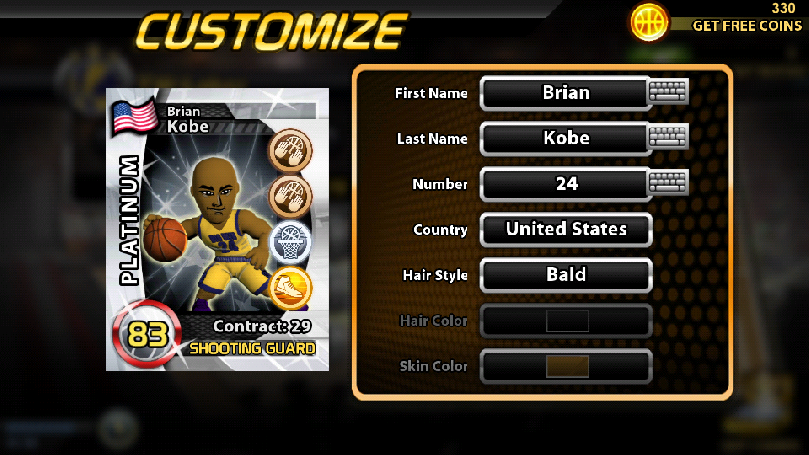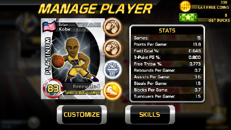 球員卡可觀看平均每場出賽數據還可以自行修改名稱、背號、國家、SKIN等等,球員卡右下角會有可簽約次數及可出賽場數,當出賽場次歸0時球員卡左下角會出現續約圖案若不續約球員仍是可上場但能力打對折這時就需要使用簽約卡來補充出場次數,一旦簽約次數用完就要使用遊戲抄票來購買簽約次數。