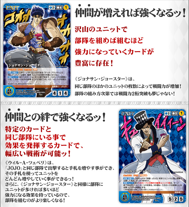 角色(CHARACTER) 卡 ,大家應該可以看見下面有顏色框起來的文字(特徵欄),裡面有男性 大人 JOJO 後面有一個小X後面括弧名子(角色自己的名子), 因為這遊戲角色可以貼機體(也要符合一點邏輯),所以代表的是這張卡不能貼在這個名子的機體上。