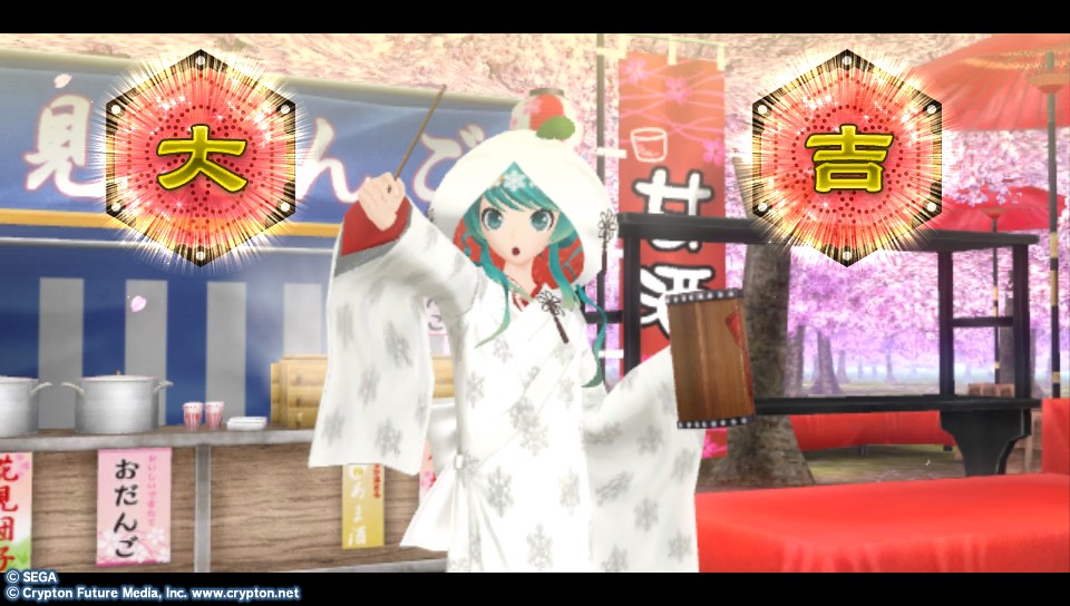 雖然紅包什麼的不會有,但還是請出穿了大禮服的雪ミク為各位獻上今年的運勢籤