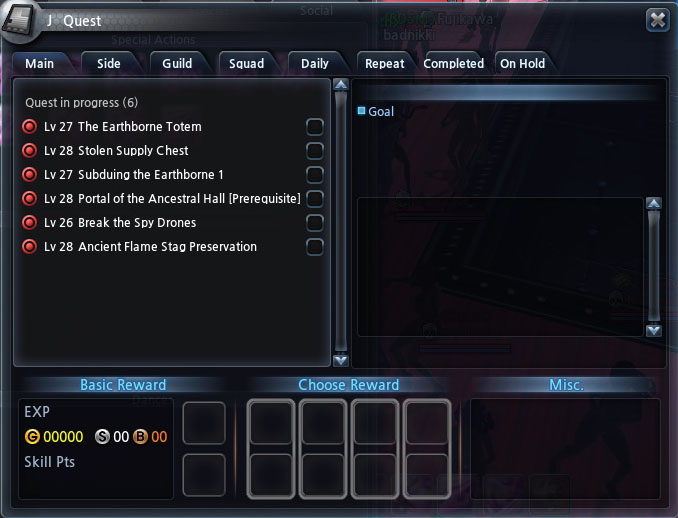 在任務方面有分主線,副線,公會,(未知),每日,重複,已完成,(未知)