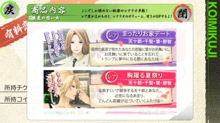 iOS版本的課金方式分為兩種,一種為每位角色的劇情獨立販售,另外一種則是全部角色路線整套販售。除了原本的內容之外,增加了叫做戀愛籤的轉蛋系統,使用遊戲內金幣抽籤的話,可以抽到一些番外短篇。金幣可以課金購買,而就像轉蛋系統一樣,這些番外篇也有分稀有度 (又是另一個坑啊...)。
