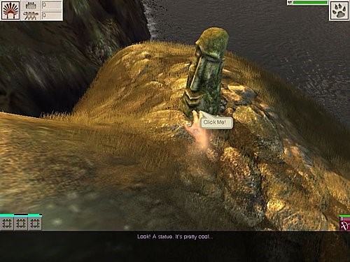最後,離開島嶼前別忘記先去找這個可疑的摩艾石像喔~XD(左鍵點擊1下)。