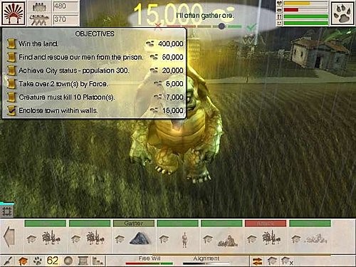 Get the Creature to help build 15 house(s). Creature Objectives.