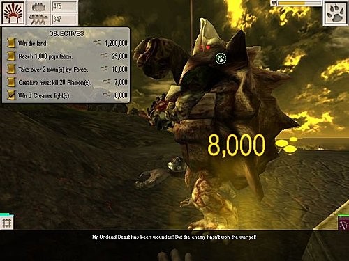 Creature must kill 20 Platoon(s). Creature Objectives.