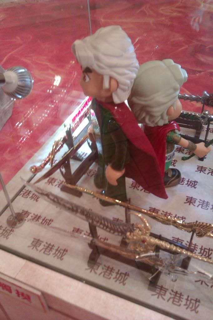 Q版兩隻,外加被一些刀刀劍劍包圍。